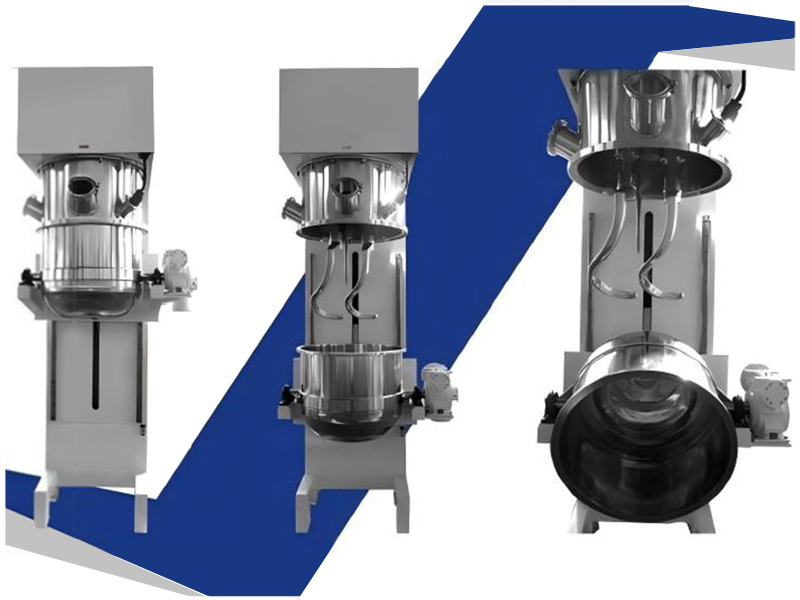 Hook Planetary Mixer is composed of two hook-type agitator blades.The upper structure of two hooks make the material move down and the lower part of the hook make the material move up.This hook blade usually requires use cooperatively with special structure of the container.The bottom of the container must be spherical and the middle part be upward convex.Such mixing method is relatively simple,but manufacturing is very difficulf.The usage of powder mixing is very common.